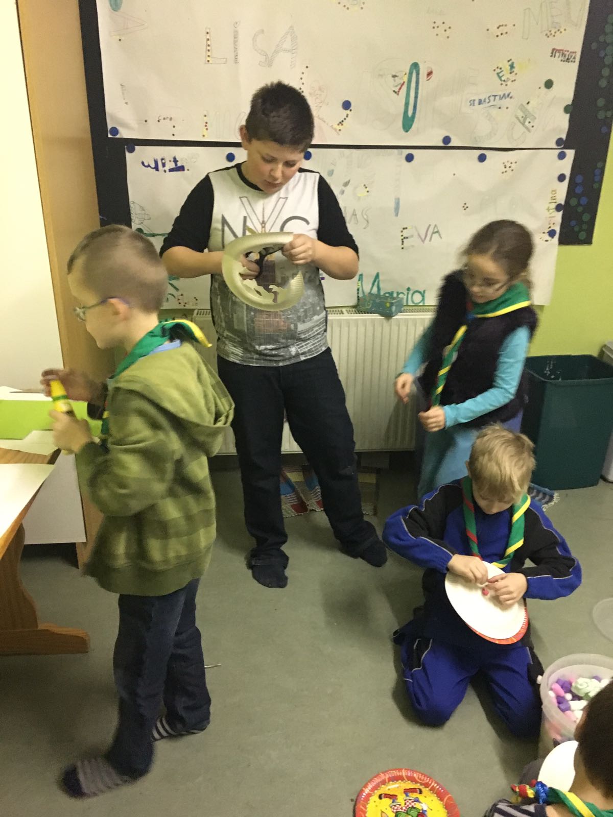 In der Heimstunde am 16. Februar 2017 bastelten die WiWö Dekoration für ihre Faschingsfeier.